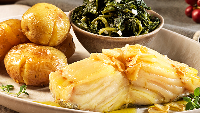 - Tiborna de Bacalhau: inspirado na receita tradicional, as lascas suculentas de bacalhau unem-se à riqueza da broa de milho, embebida em azeite português e alho. Sirva com batatas assadas a murro e grelos salteados.