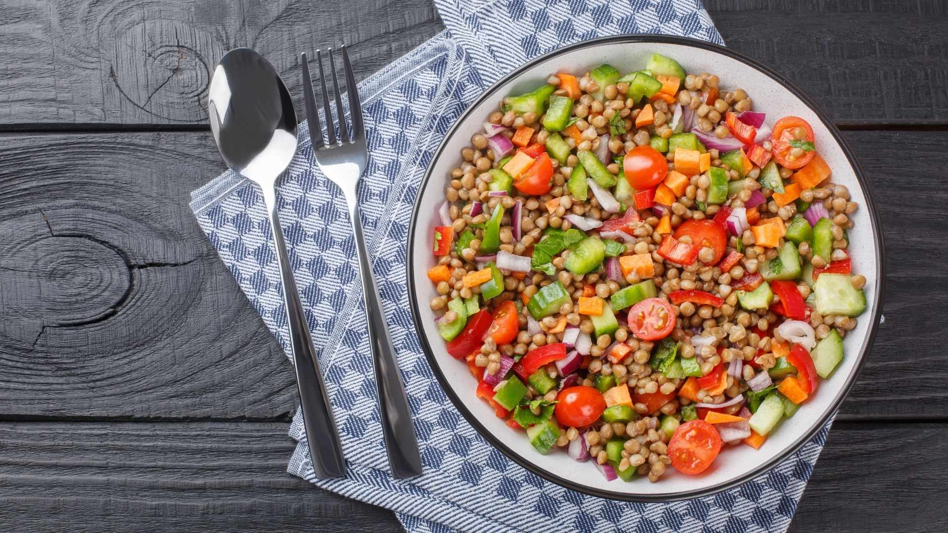As lentilhas também brilham em pratos frios ou mornos. Para uma salada nutritiva, utilize lentilhas já cozidas e arrefecidas, de preferência as verdes ou as castanhas, que mantêm a consistência mais firme depois de cozer.