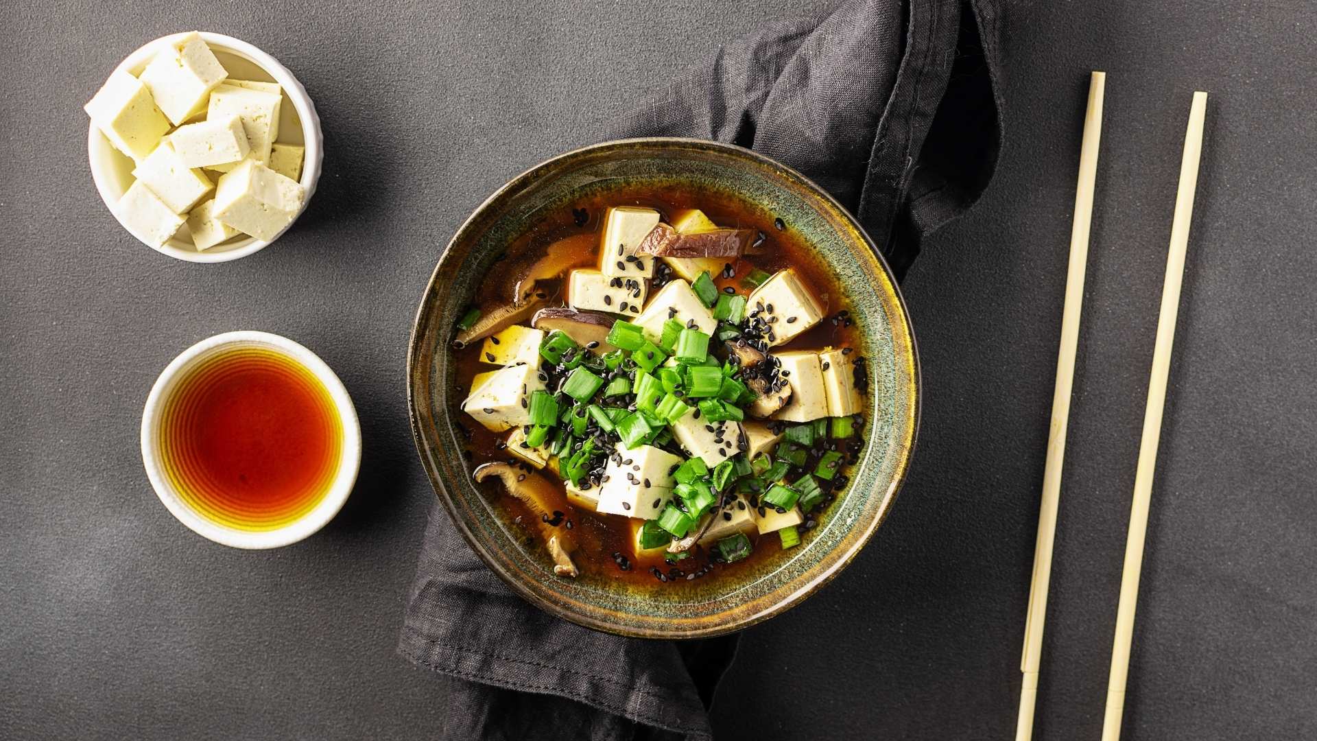 - Sopa miso (diluir a pasta fora da fervura) com tofu e espargos ou alcachofra salteados;