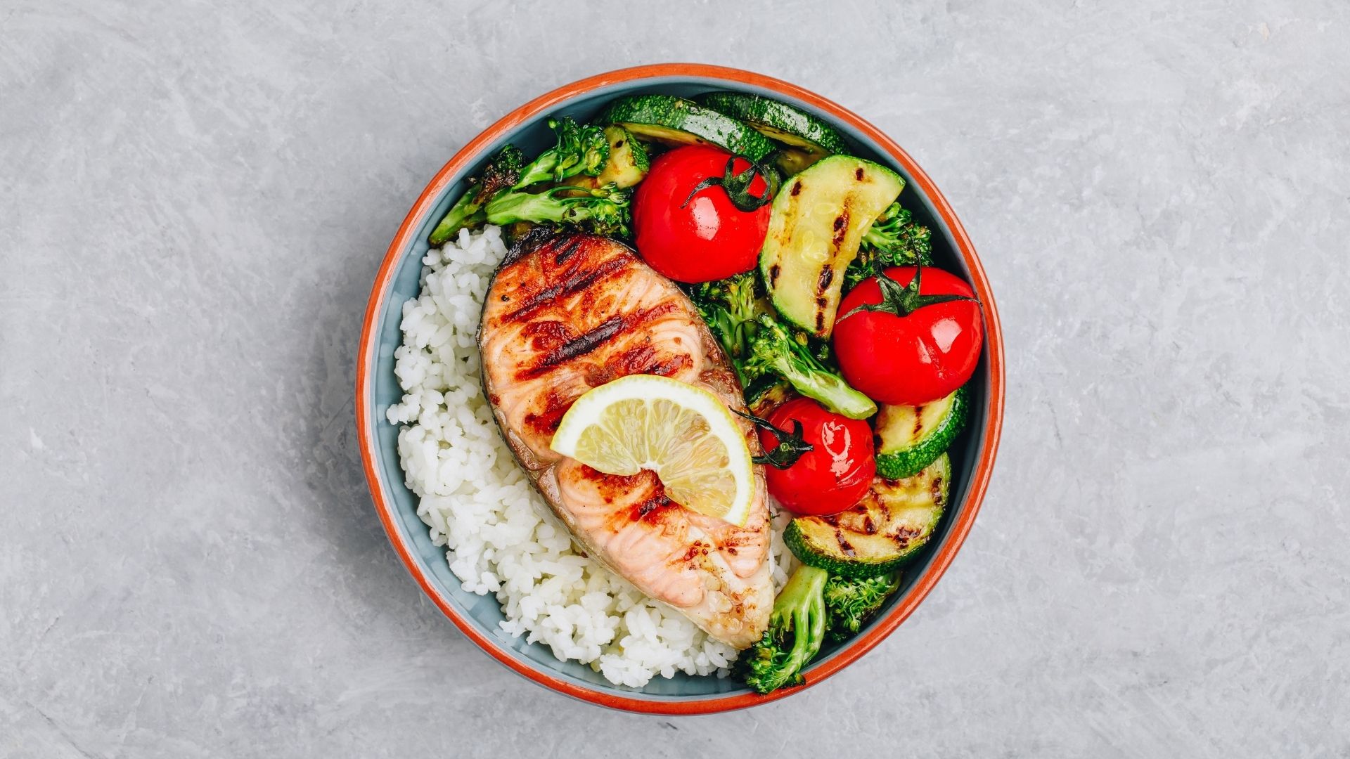 Por exemplo, imagine o prato do jantar dividido assim: meio prato com legumes salteados ou salada, um quarto com quinoa ou arroz e outro quarto com peixe grelhado. Simples e saudável.