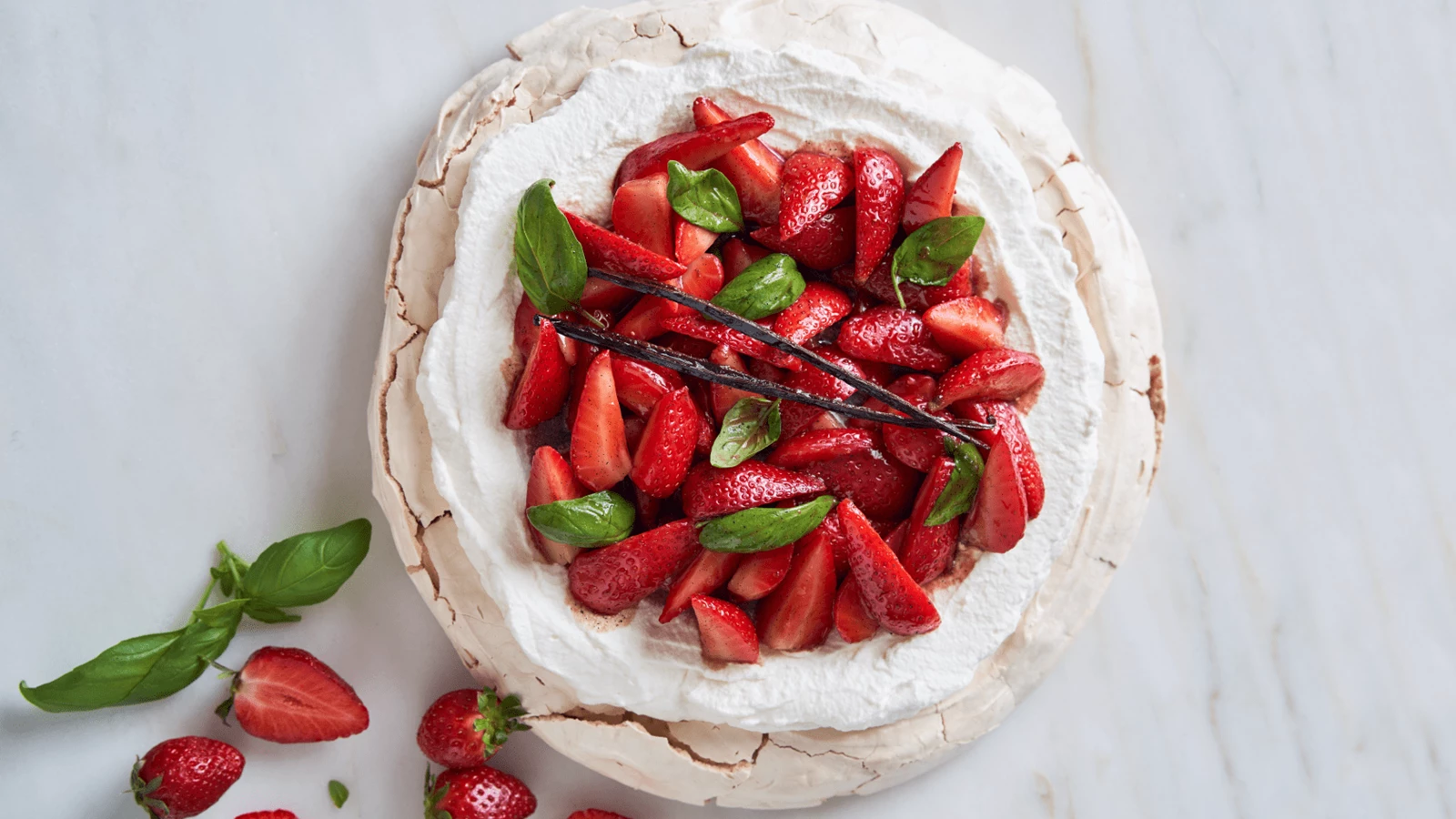 Um toque britânico que combina morangos bem frescos, chantilly e pedaços crocantes de merengue.