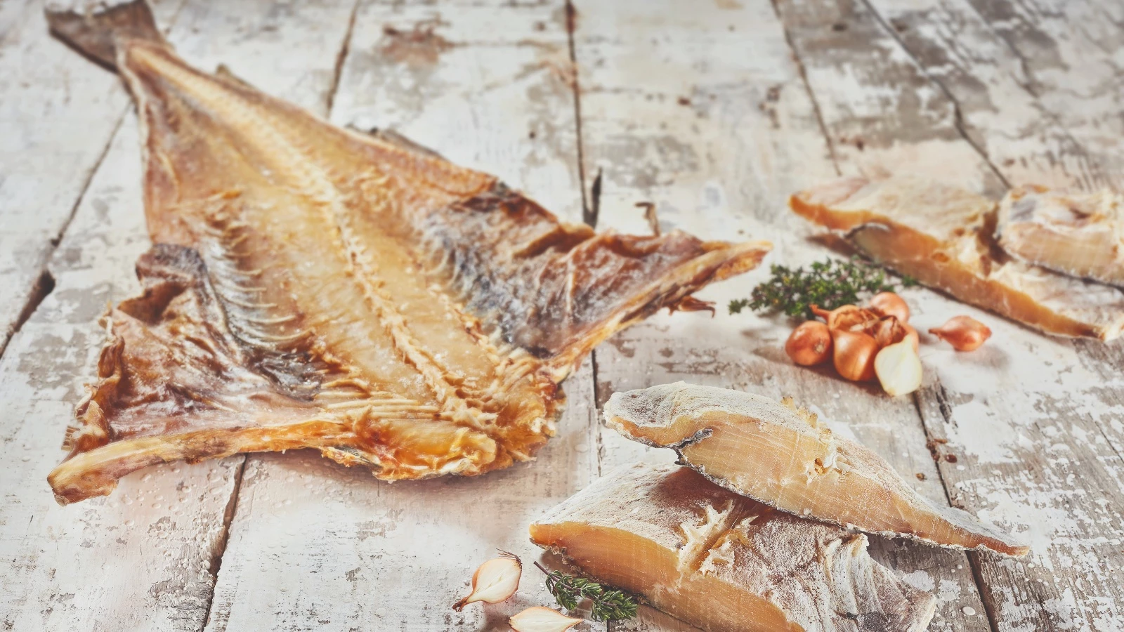 A cura pode ir de 1 até 9 meses, e influencia a cor, sabor e textura do bacalhau