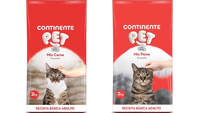 Nos supermercados Continente pode encontrar várias opções de ração mainstream e premium para gatos.