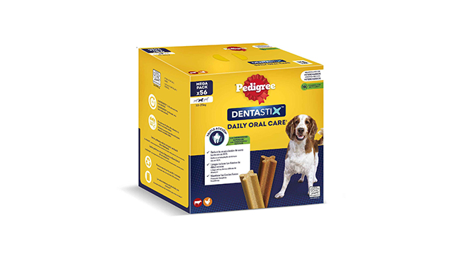 Espreite também estes snacks dentários da Dentastix Pedigree para cães adultos, também disponíveis nas versões Mini e Maxi. Ajudam a limpar os dentes, a ter um hálito mais fresco, e a combater o tártaro.