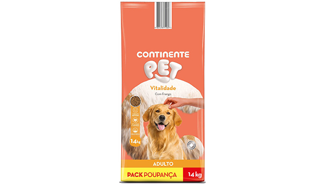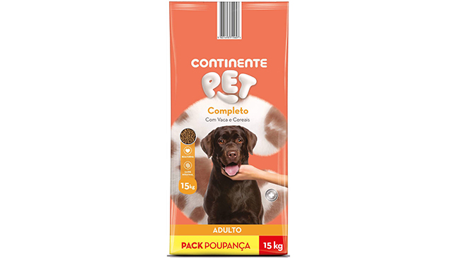 Uma opção vantajosa é a Ração para Cão Adulto Vaca e Cereais Pack Poupança, da gama Continente Pet. Além do preço, contribui para a saúde intestinal e melhora a qualidade da pele e do pelo do animal.