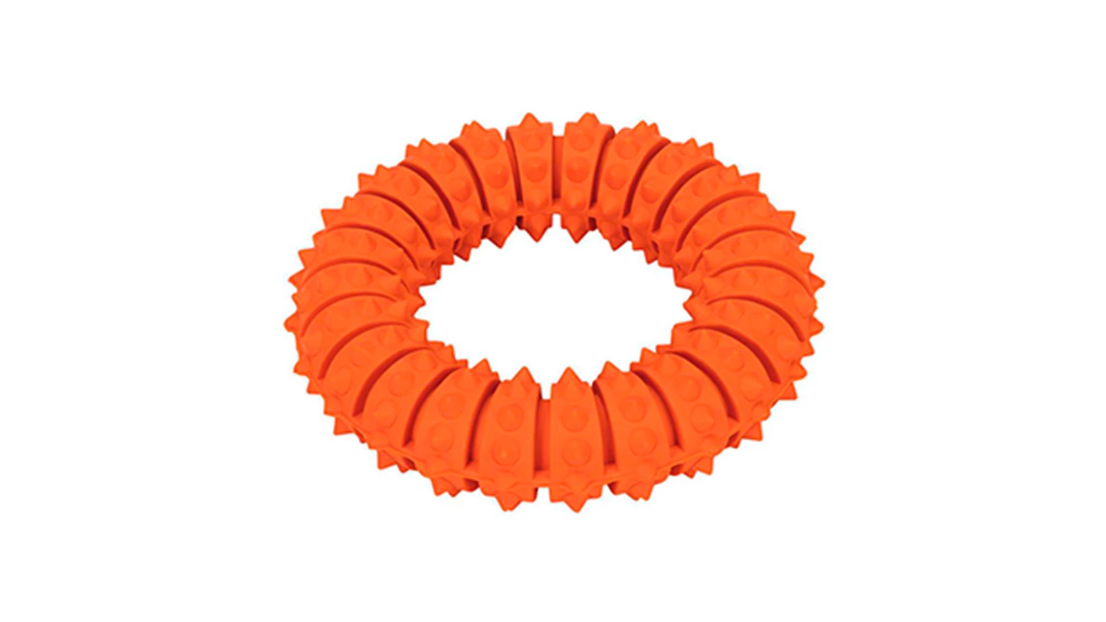 É o caso dos brinquedos em latex, sticks ou este anel mordedor, que o cão poderá morder para se divertir.