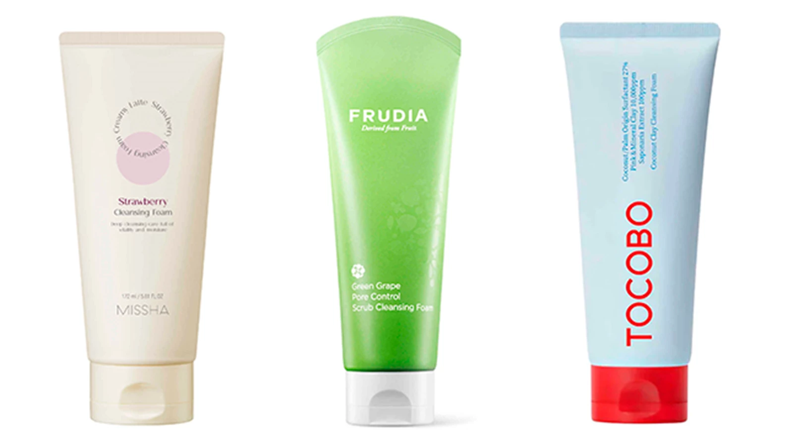 - Pele oleosa: a Espuma de Limpeza Chá Verde da Missha, enriquecida com chá verde e leite, tem uma textura cremosa que limpa profundamente, elimina o excesso de oleosidade e deixa uma sensação de frescura. Já a Espuma de Limpeza Argila e Coco da Tocobo contém argila rosa e mineral, fortes aliados na remoção da sujidade da pele e o excesso de sebo.
