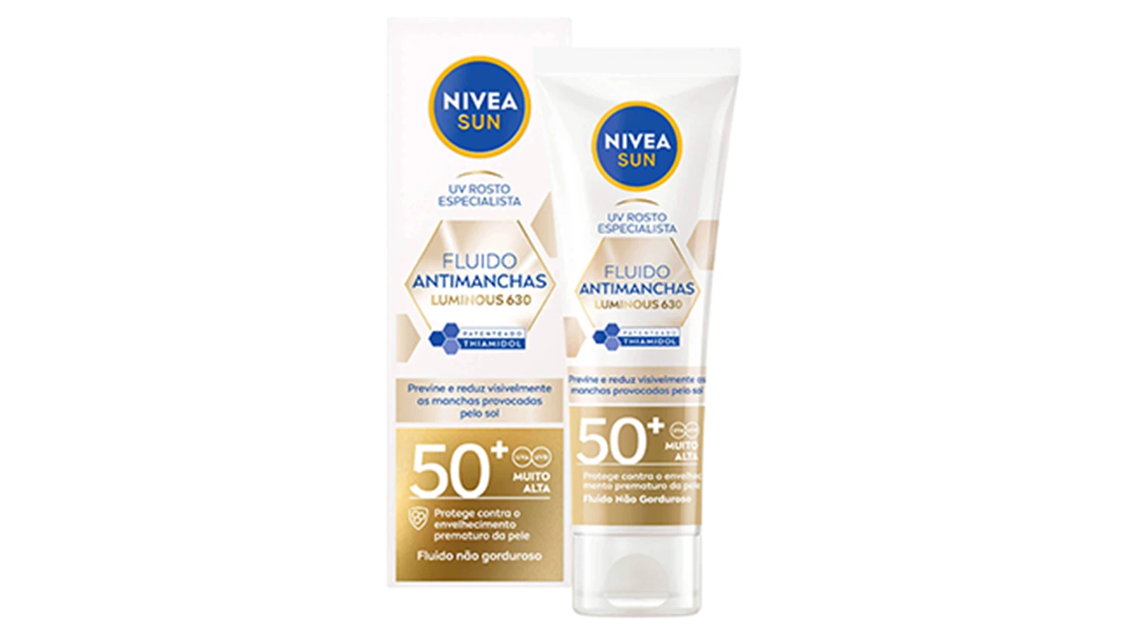 Prefira fórmulas desenvolvidas para peles com manchas, como o Protetor Solar Sun Rosto Luminous 630 FPS 50+ Nivea – um dos melhores protetores solares para rosto com melasma. É um creme fluído, não gorduroso, que ajuda a prevenir e a reduzir visivelmente as manchas causadas pelo sol.