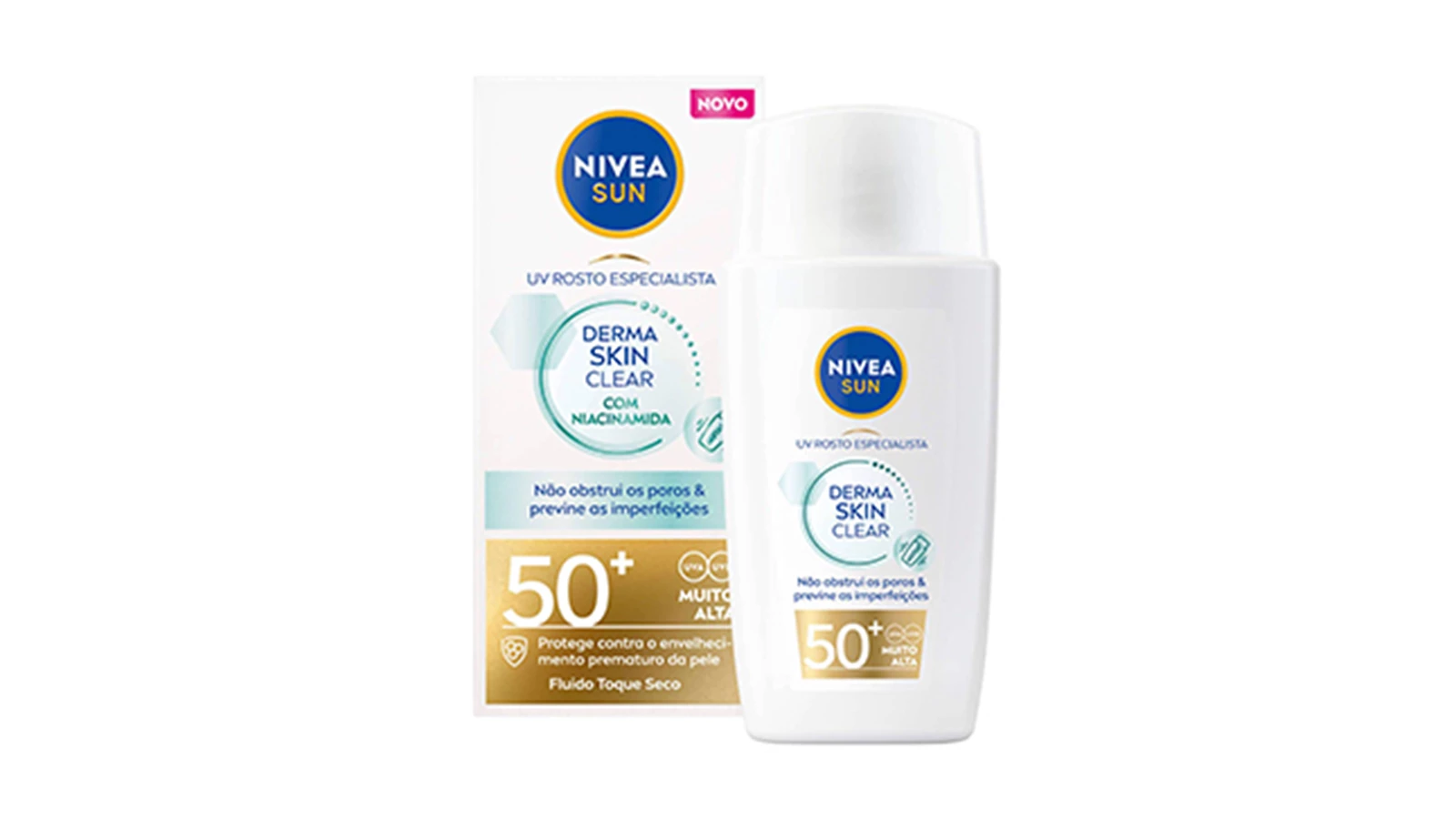 Opte por um protetor solar para rosto com ação matificante e ingredientes como ácido salicílico ou ácido glicólico, que ajudam a prevenir novas borbulhas e combatem os sinais da acne. Além disso, prefira fórmulas específicas para pele oleosa ou acneica, de preferência com niacinamida, como este da Nivea. Além disso, lembre-se que o sol pode escurecer manchas e agravar as cicatrizes. Se está a fazer algum tratamento para a acne, fale com o seu dermatologista antes de escolher um protetor solar.