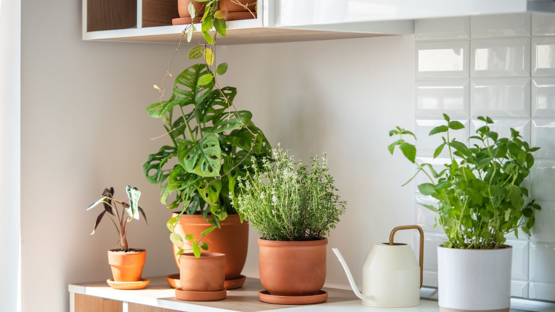 Plantas trazem frescura e cor, mesmo em cozinhas pequenas. Pode optar por ervas aromáticas perto da janela (manjericão, salsa, coentros) ou por plantas artificiais se tiver pouca luz natural ou pouco tempo para cuidar delas.