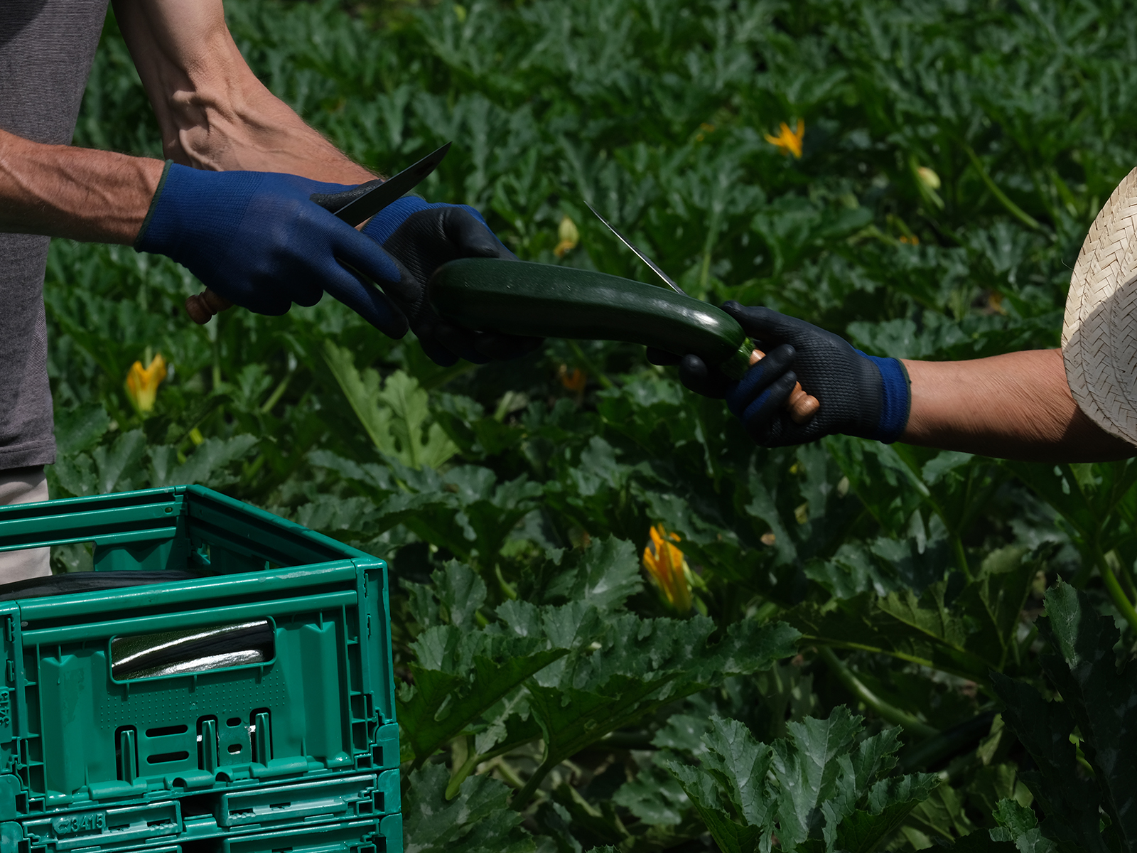 Cada planta gera cerca de 15 curgetes ao longo do seu ciclo de vida, que dura cerca de três meses. Quando atingem cerca de 26 centímetros, estão prontas para serem colhidas. Com o auxílio de uma faca são retiradas da planta, e colocadas em caixas ainda no campo.