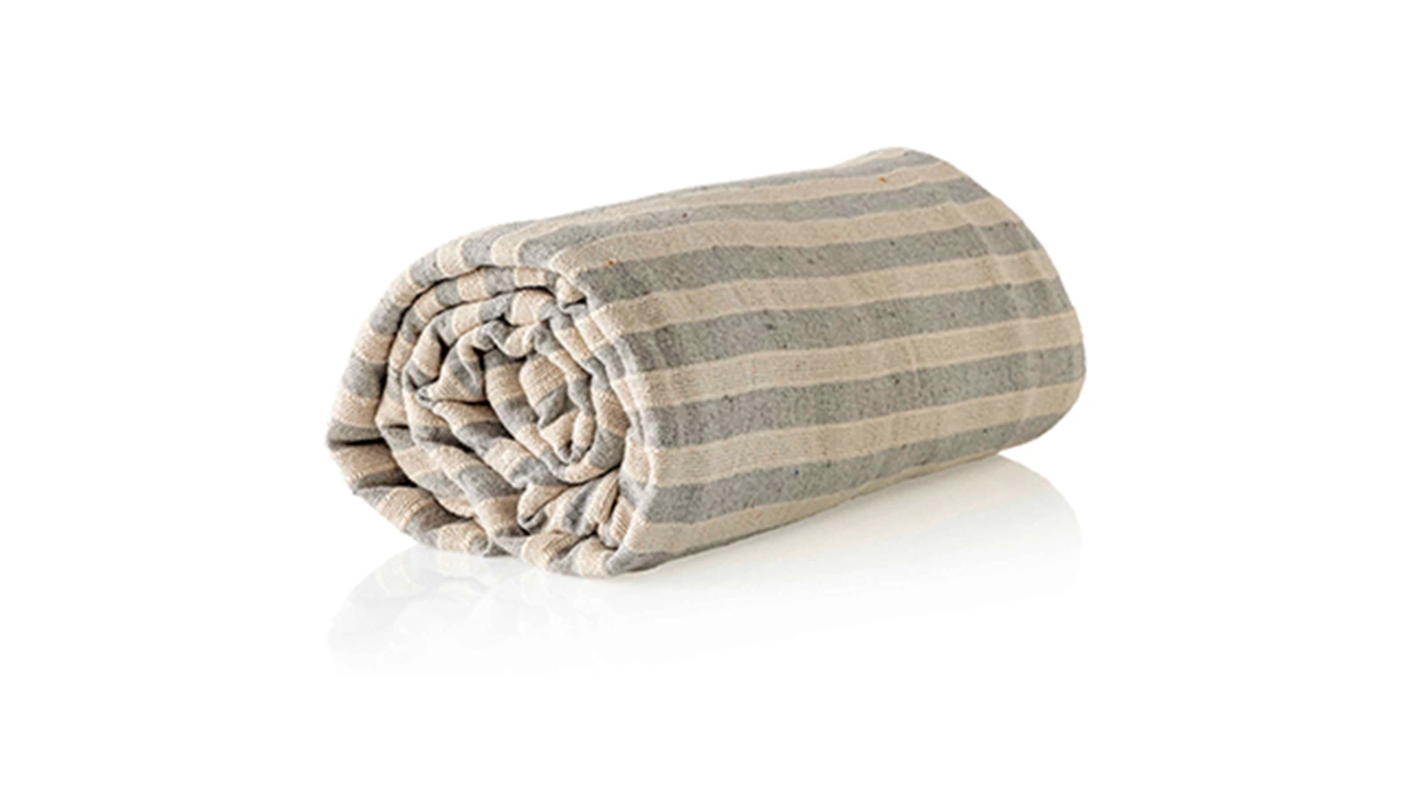 Crie um espaço de lounge relaxante junto à piscina, com cadeiras de jardim confortáveis, guarda-sol bem grande e elegante para maior proteção, sem abdicar da elegância, e uma mesa auxiliar para colocar bebidas refrescantes. Adicione também têxteis, como esta manta da marca KASA, para maior aconchego num sofá de jardim ou para um piquenique ao ar livre.