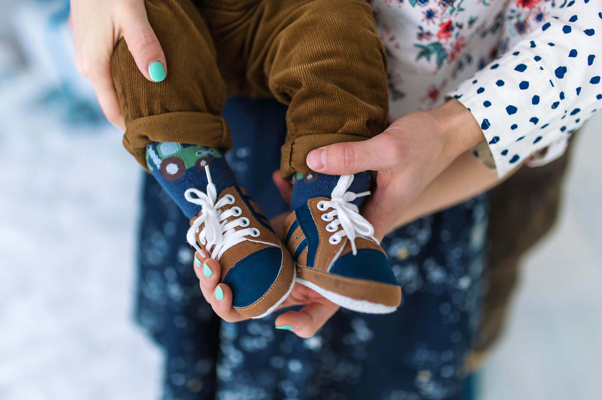 Até aos 6-9 meses os sapatos são considerados um mero acessório estético. Depois deste período é importante optar por materiais resistentes, com tecidos transpiráveis, sola flexível e de biqueira larga, que permitam a mobilidade dos dedos e do pé.