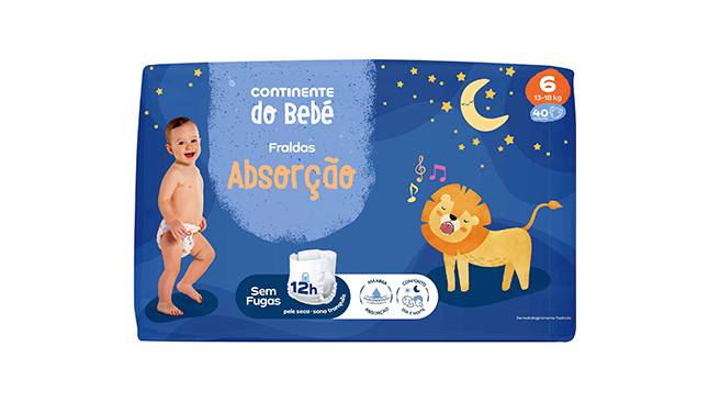 As fraldas Absorção Continente do Bebé garantem pele seca e sono tranquilo, com proteção contra fugas até 12 horas. São perfeitas para a noite e para crianças que precisam de máxima absorção durante o dia. Estão disponíveis nos tamanhos T3 (4-9 kg), T4 (7-14 kg), T5 (11-16 kg) e T6 (13-18 kg).