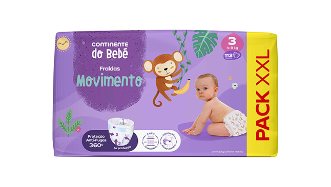 A linha Movimento Continente do Bebé foi pensada para acompanhar o crescimento e a energia do seu bebé: desde que começa a gatinhar até aos passos mais firmes rumo ao desfralde. Todas as fraldas são dermatologicamente testadas, têm proteção anti fugas e um ajuste 360º para uma excelente adaptação ao movimento.