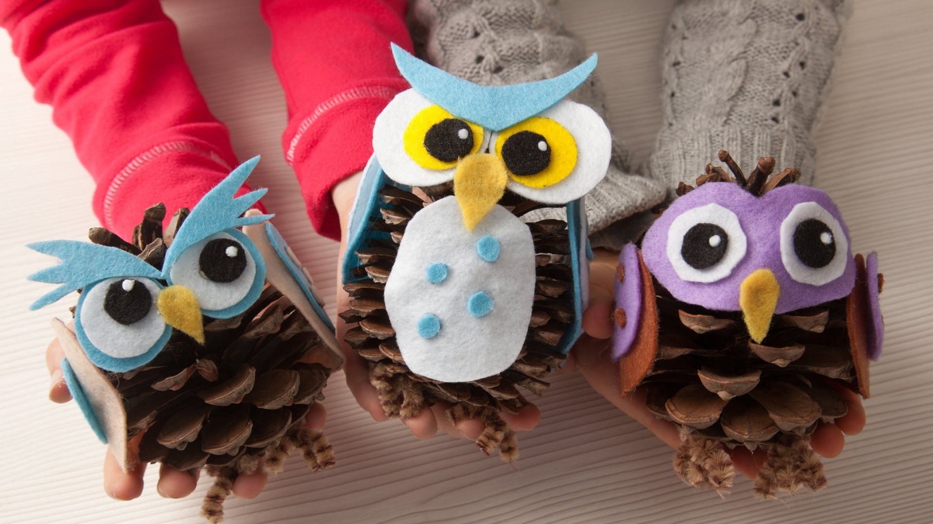 As pinhas podem transformar-se facilmente em raposas, corujas ou esquilos. Basta adicionar feltro e pequenos ramos.