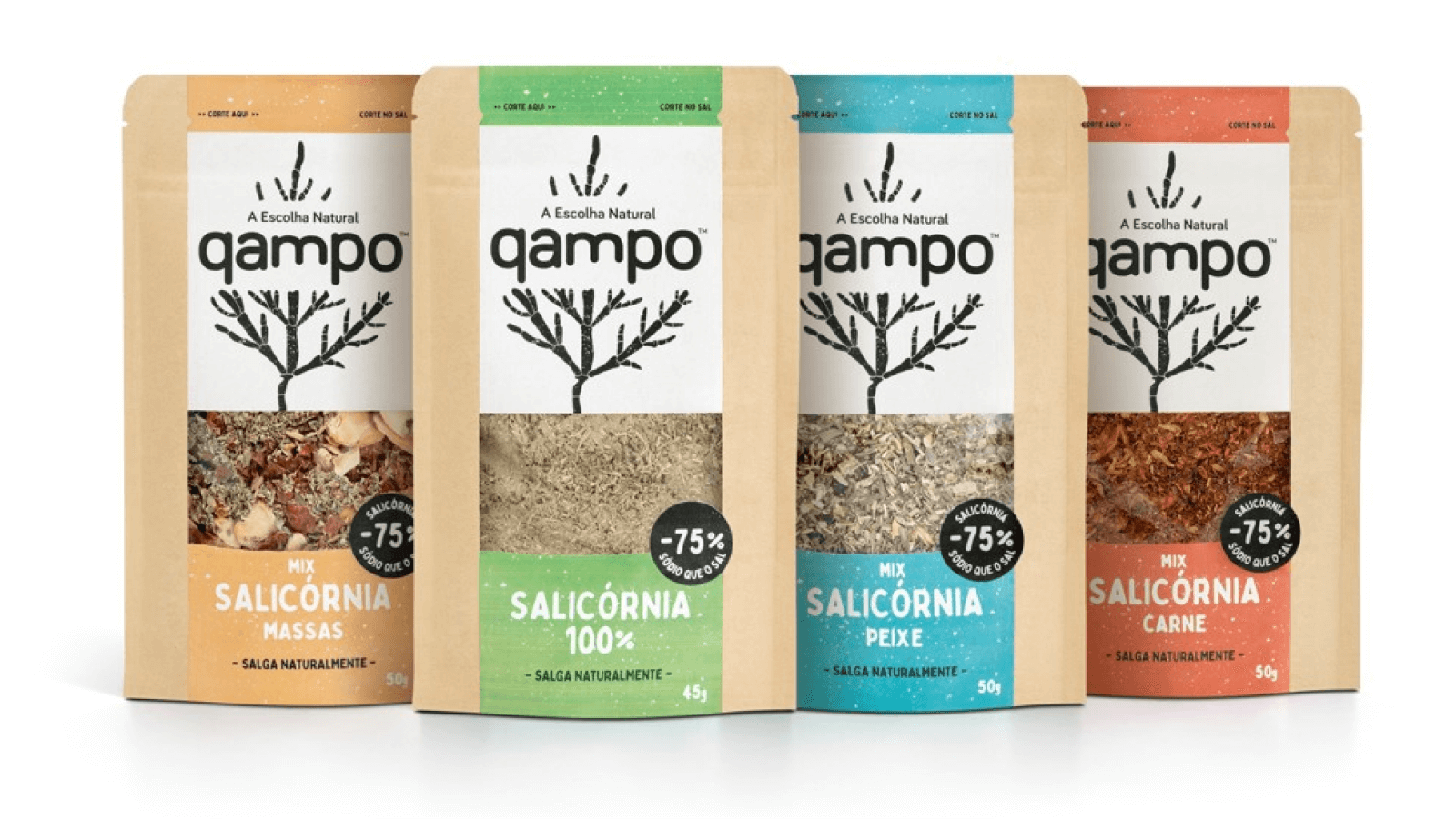 A Salicórnia qampo, acabadinha de chegar aos corners Food Lab, está disponível numa gama variada: 100% salicórnia desidratada em pó e 3 mixes para carne, peixe e massas.