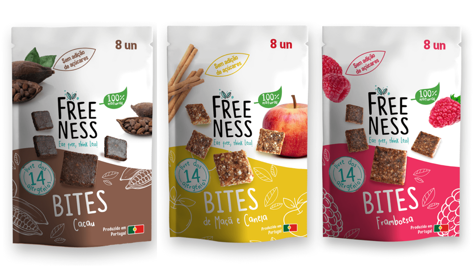 Agora já pode encontrar nos nossos expositores e online os bites da Freeness, 100% naturais e livres dos 14 principais alergénios.