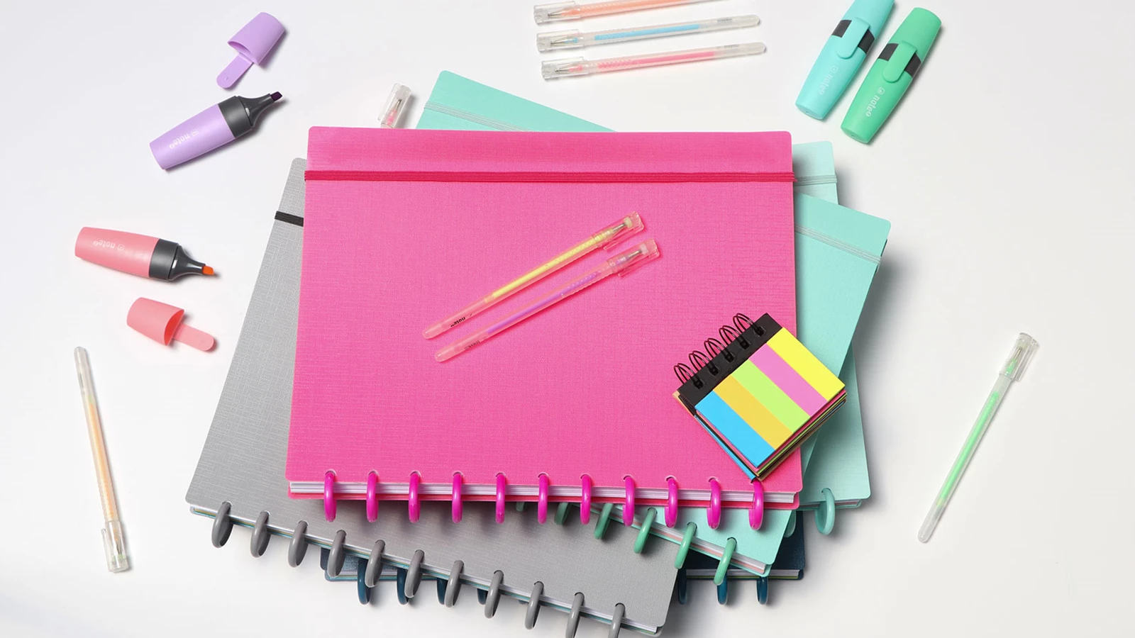Em alternativa, com um caderno smart pode ter todos os tipos de folhas num só caderno — basta acrescentar e retirar conforme precisar. Tudo isto graças ao sistema de discos laterais removíveis. Além de serem práticos e económicos, os cadernos smart são também uma solução mais amiga do ambiente. E, claro, irá precisar de acessórios para manter toda a informação organizada — pastas, capas, organizadores, etiquetas, portfólios e bolsas.