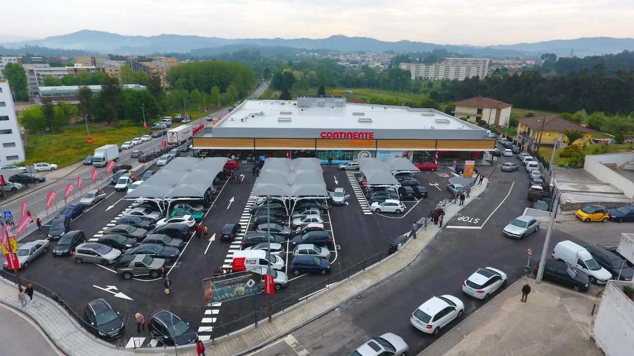 Esta loja Continente disponibiliza um parque de estacionamento a todos os seus clientes com lugares destinados a pessoas com mobilidade condicionada e lugares reservados para famílias.