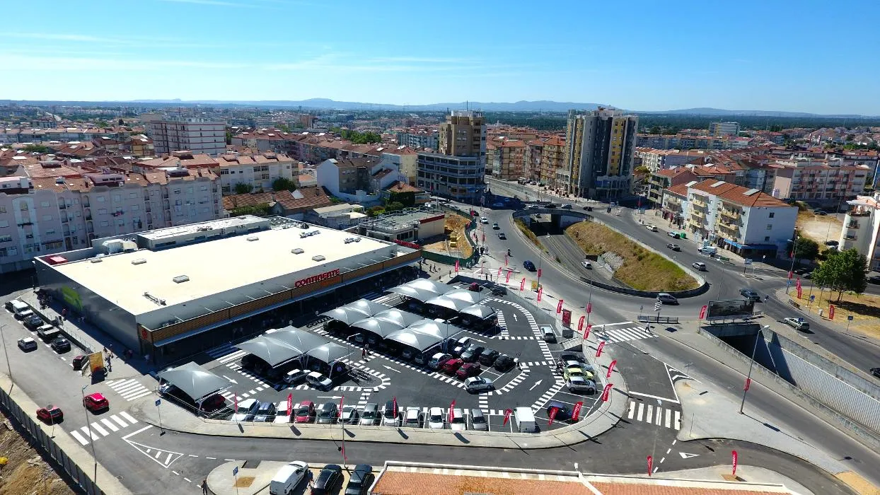 Esta loja Continente disponibiliza um parque de estacionamento a todos os seus clientes com lugares destinados a pessoas com mobilidade condicionada e lugares reservados para famílias.