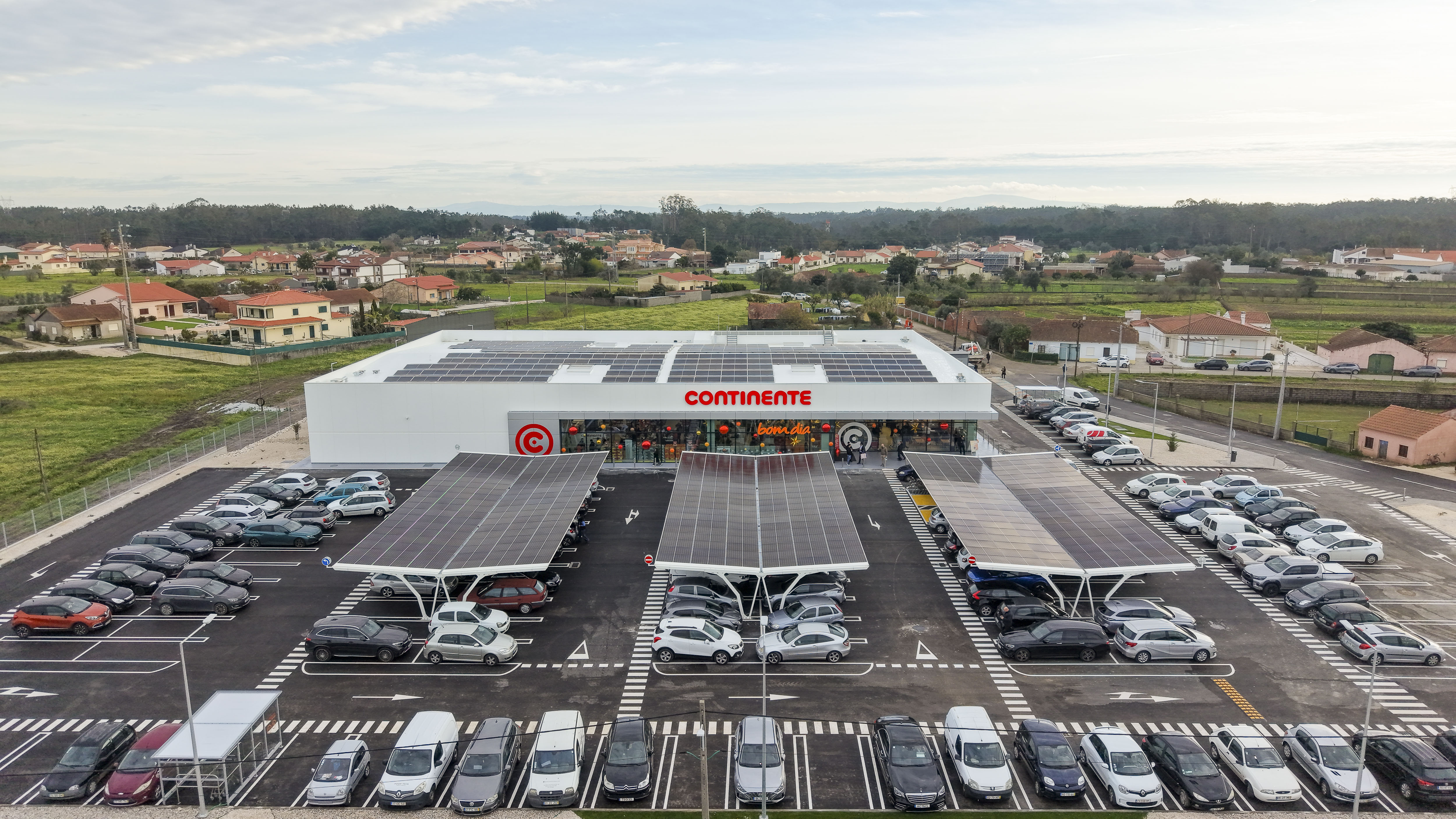Esta loja Continente disponibiliza um parque de estacionamento a todos os seus clientes com lugares destinados a pessoas com mobilidade condicionada e lugares reservados para famílias.