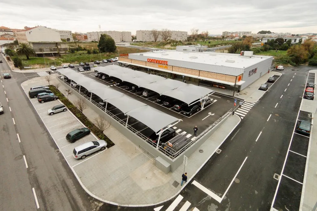 Esta loja Continente disponibiliza um parque de estacionamento a todos os seus clientes com lugares destinados a pessoas com mobilidade condicionada e lugares reservados para famílias.