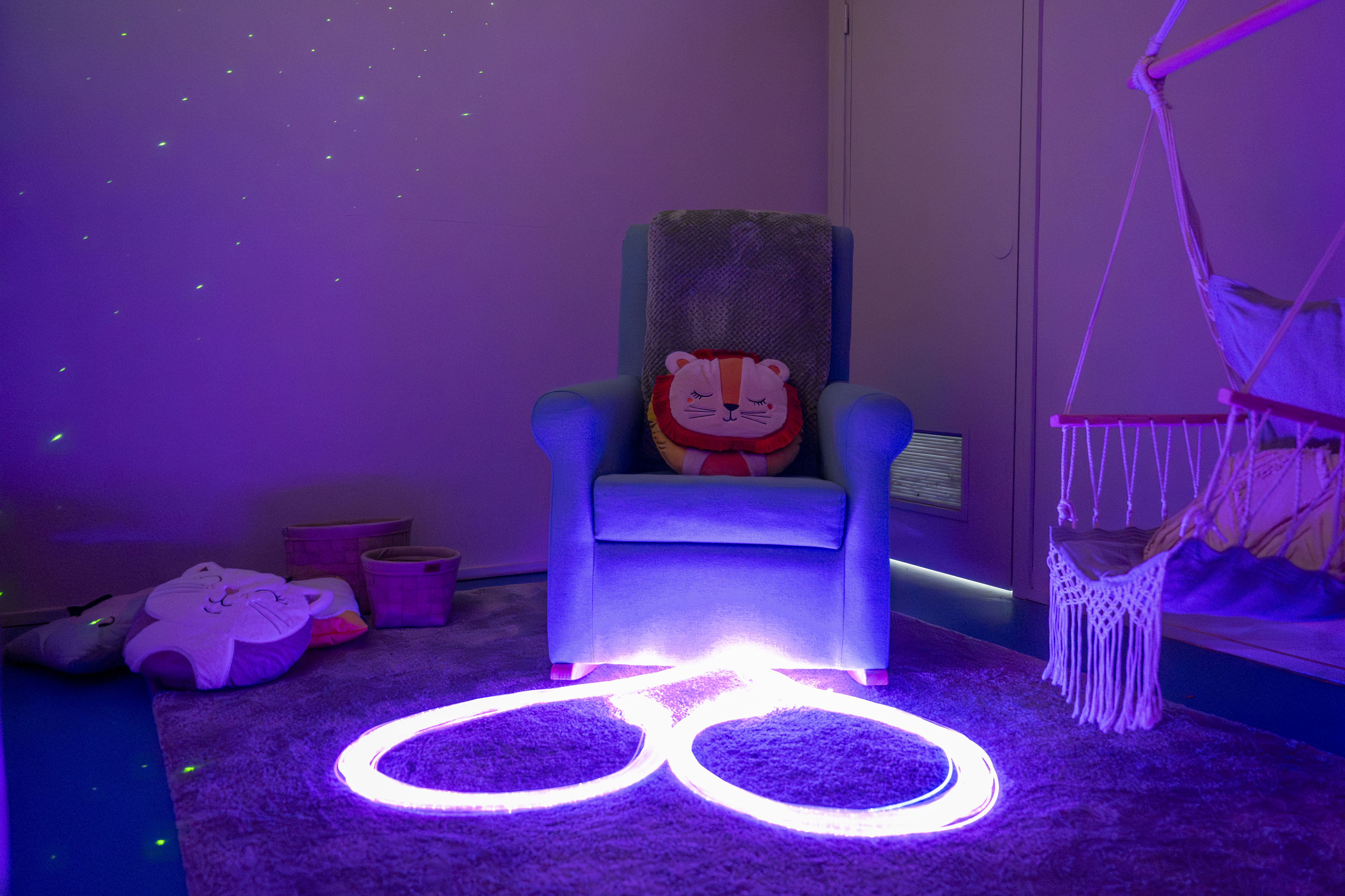 Sala de conforto, abafadores de som, carrinhos e caixas adaptadas, assistência personalizada e planta sensorial para uma experiência de compra inclusiva.