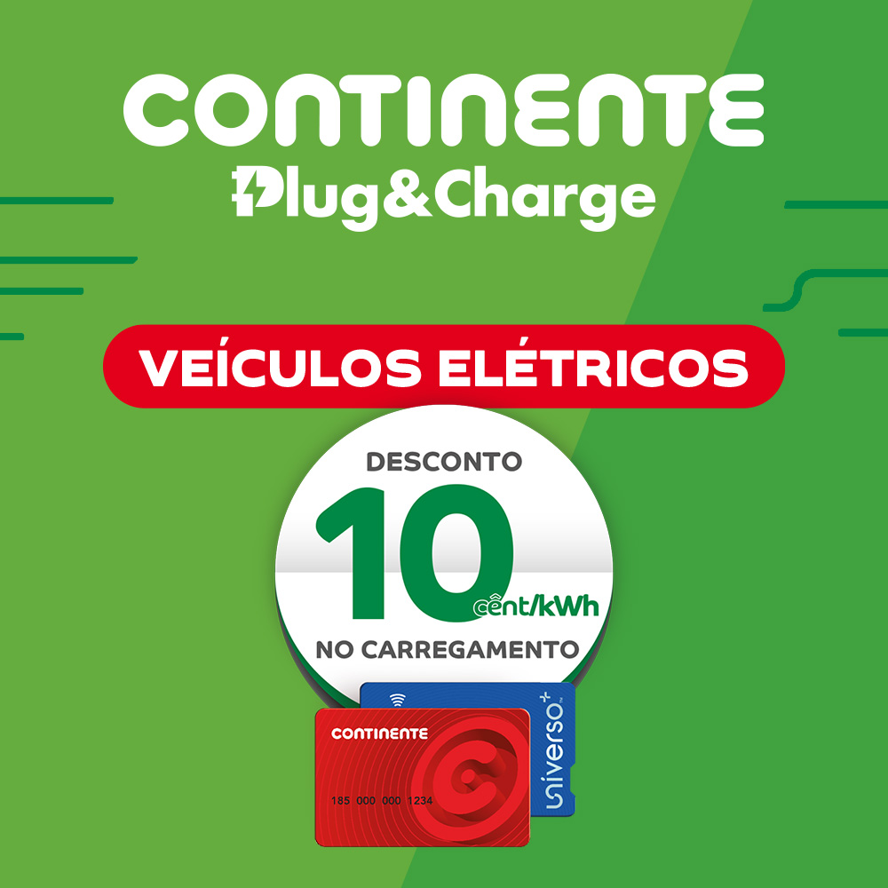 Efetue uma compra superior a 30€ nas lojas Continente e receba um cupão de 10 cêntimos/kWh em Cartão Continente.