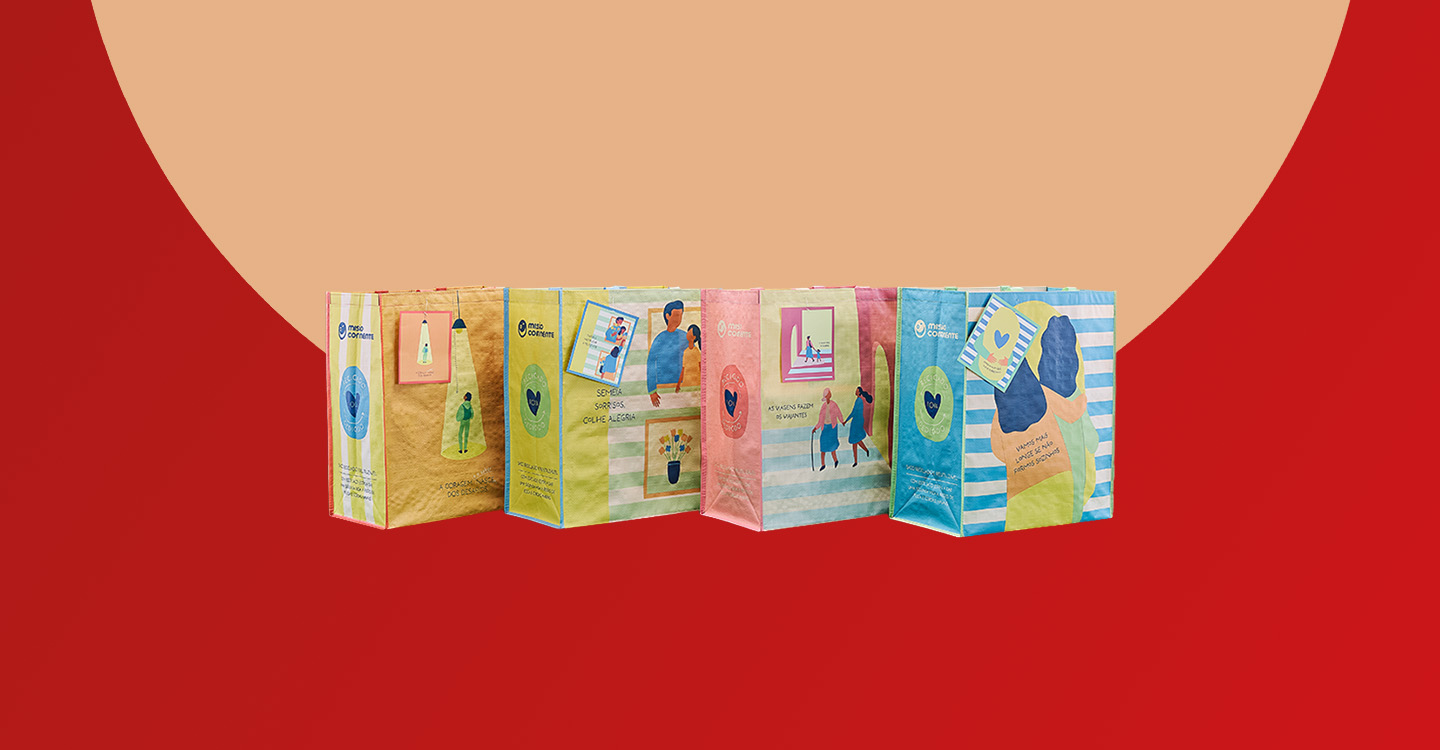 Disponíveis em todas as nossas lojas, cada saco está associado a uma área de intervenção e por cada unidade vendida 0,50€ reverte para instituições que atuam nessa causa.