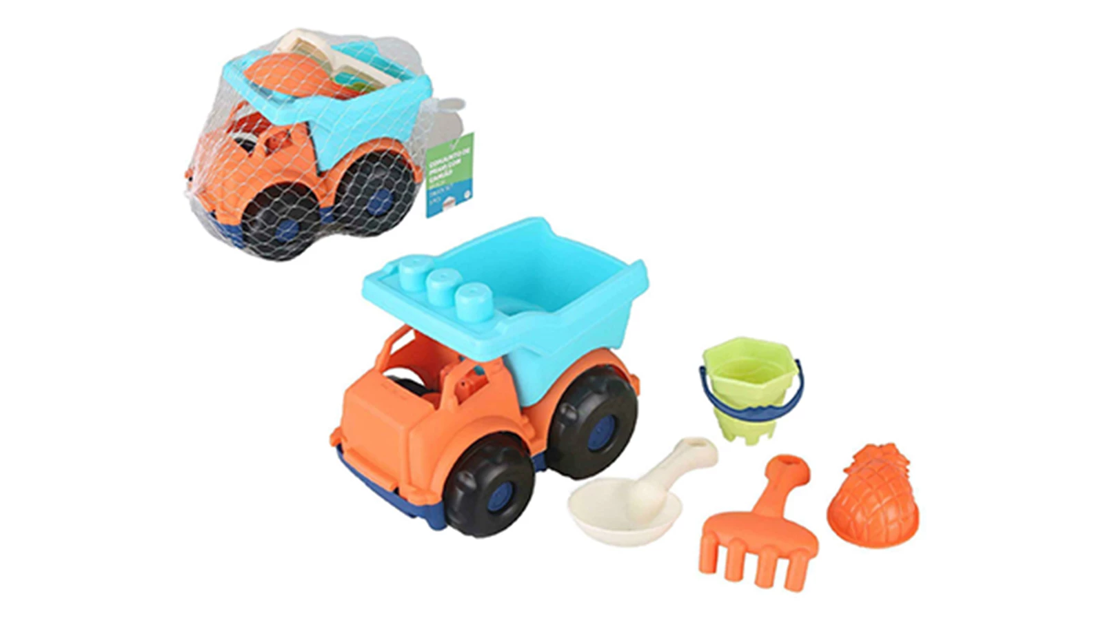 A marca ZOKO tem vários kits de praia com pás e formas para brincar na areia, como o conjunto de praia que inclui camião, balde, pá, ancinho e uma forma, perfeito para as melhores construções durante as férias.