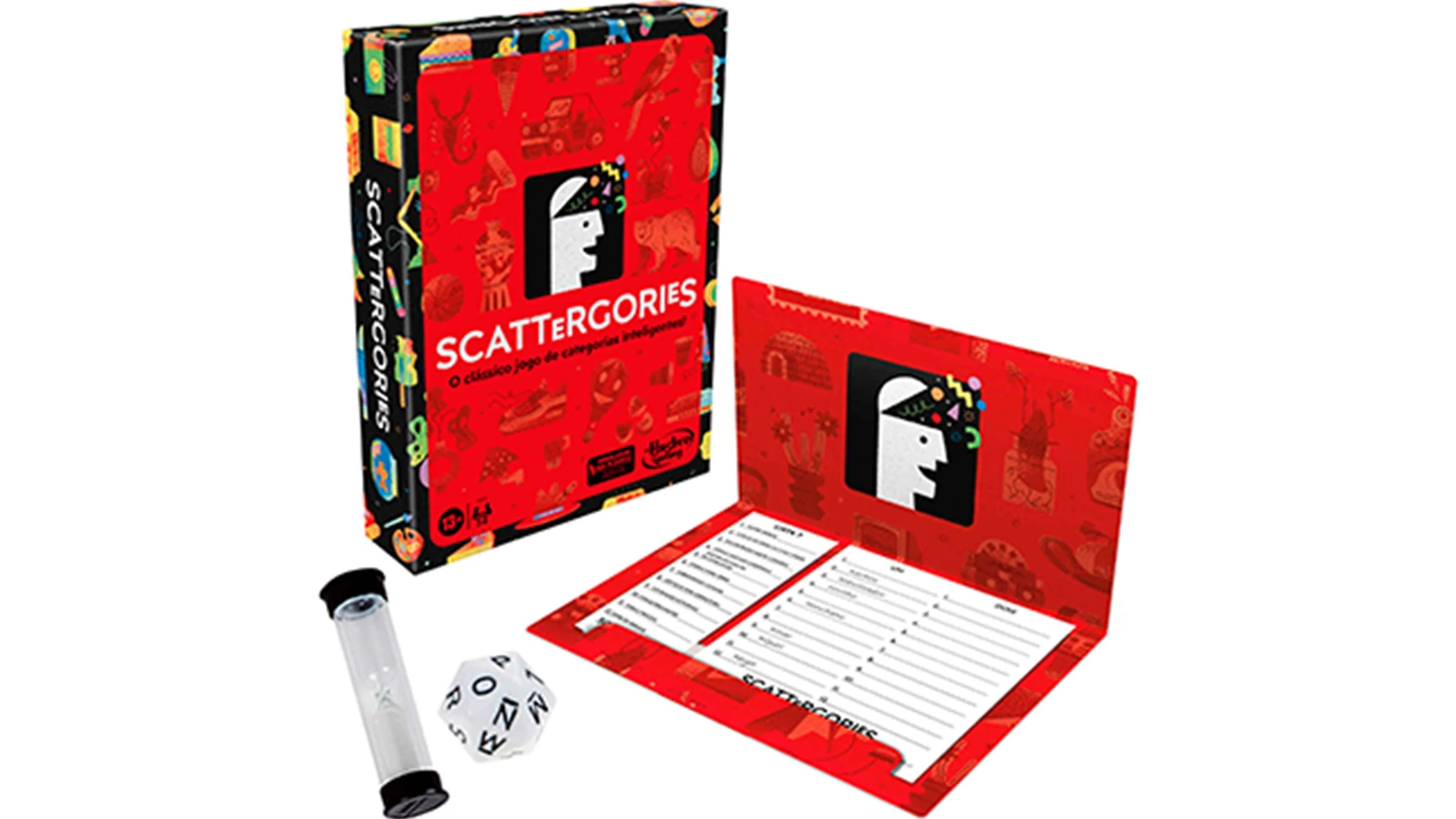 O Scattergories é ideal para noites de jogos, encontros e festas. O clássico jogo de categorias inteligentes assegura muitas horas de diversão. As novas categorias como podcast e alimentos controversos adicionam um toque moderno a este jogo clássico. Um jogo divertido e emocionante para até 6 jogadores.