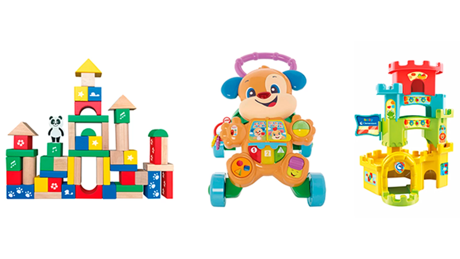 - Baby Castelo Divertido: um castelo colorido para encaixar peças e criar circuitos para as bolas. Promove o desenvolvimento cognitivo e manual.