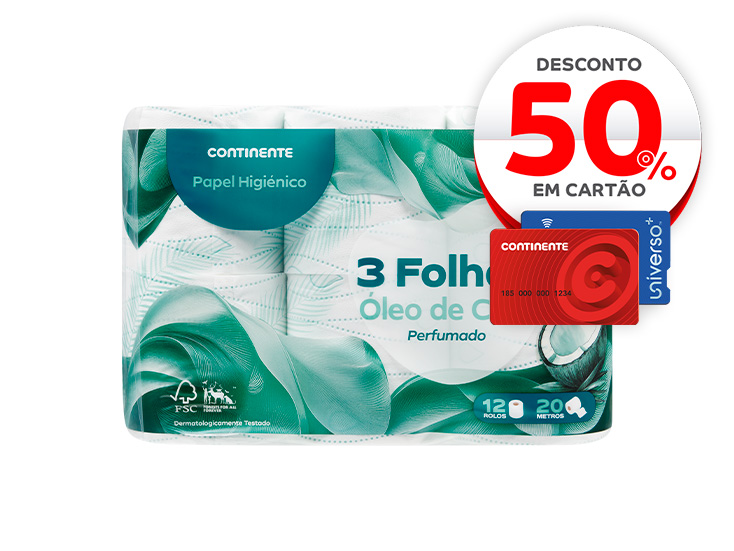 Papel Higiénico 3 Folhas Óleo de Coco Continente 12 unidades