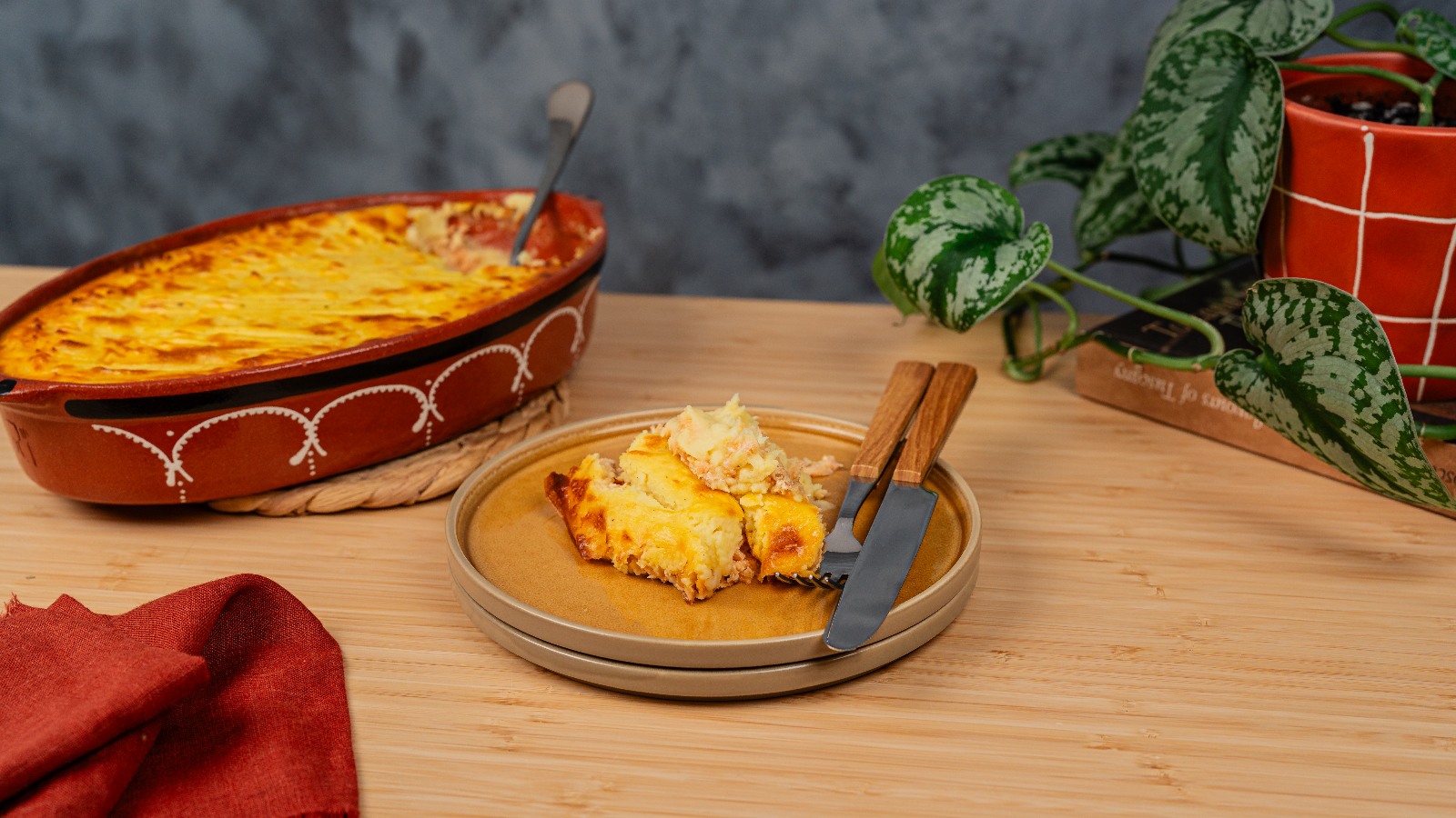 Junte as restantes natas leves e polvilhe com queijo ralado. Leve a gratinar ao forno pré-aquecido a 200ºC, durante 20 minutos até ficar bem dourado e crocante.