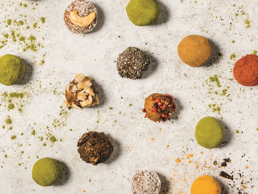 Retire a mistura do copo e molde bolinhas com cerca de 20 g cada. Passe-as por sementes de sésamo. Leve-as ao congelador, num recipiente hermético, antes de comer. Pode conservá-las no congelador ou no frigorífico, consoante prefira uma textura mais ou menos chewy.