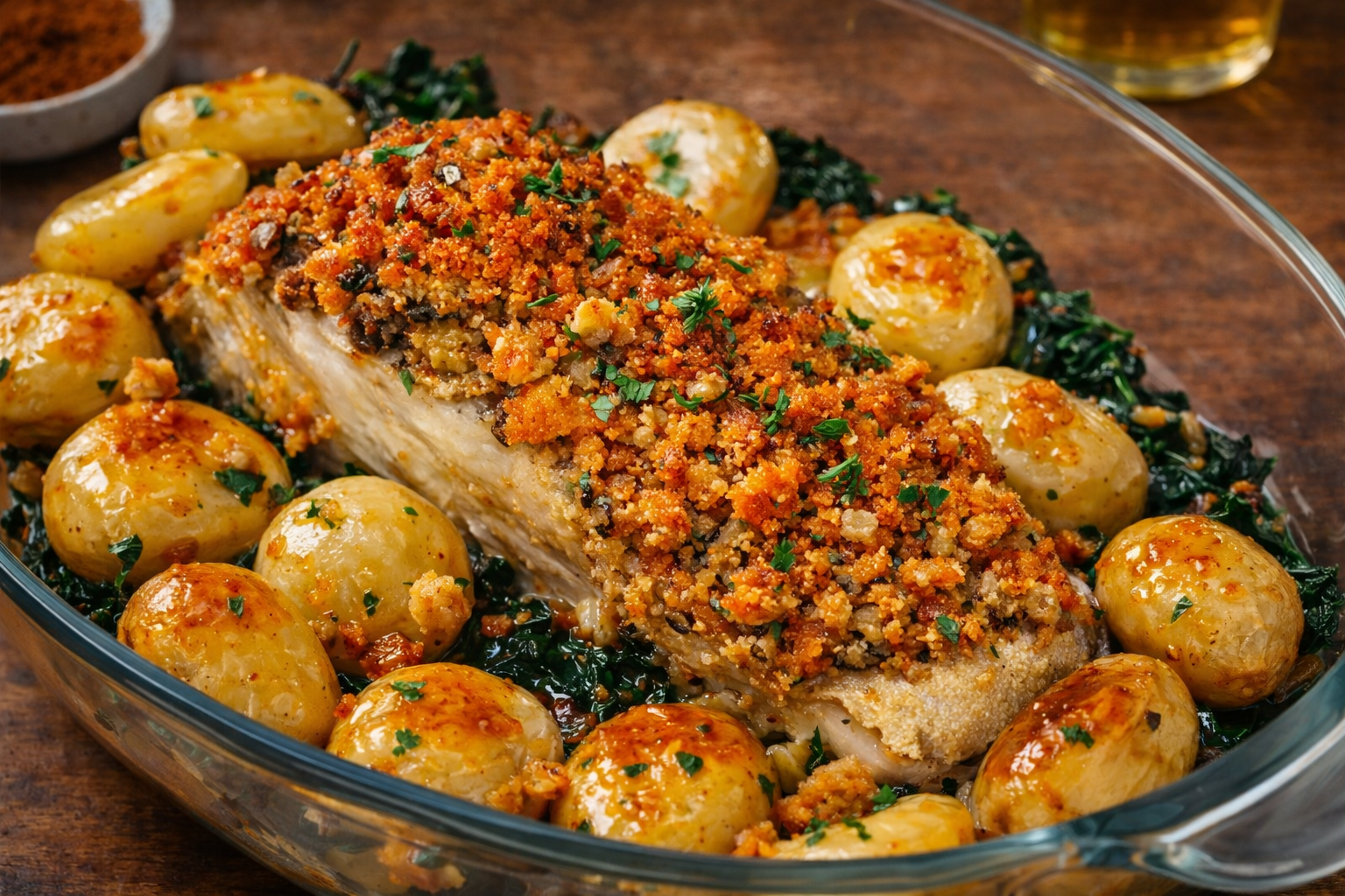 Adicione depois as postas de bacalhau e deixe cozer por 15 a 18 minutos. Retire do lume e coe as batatas e as postas de bacalhau.
