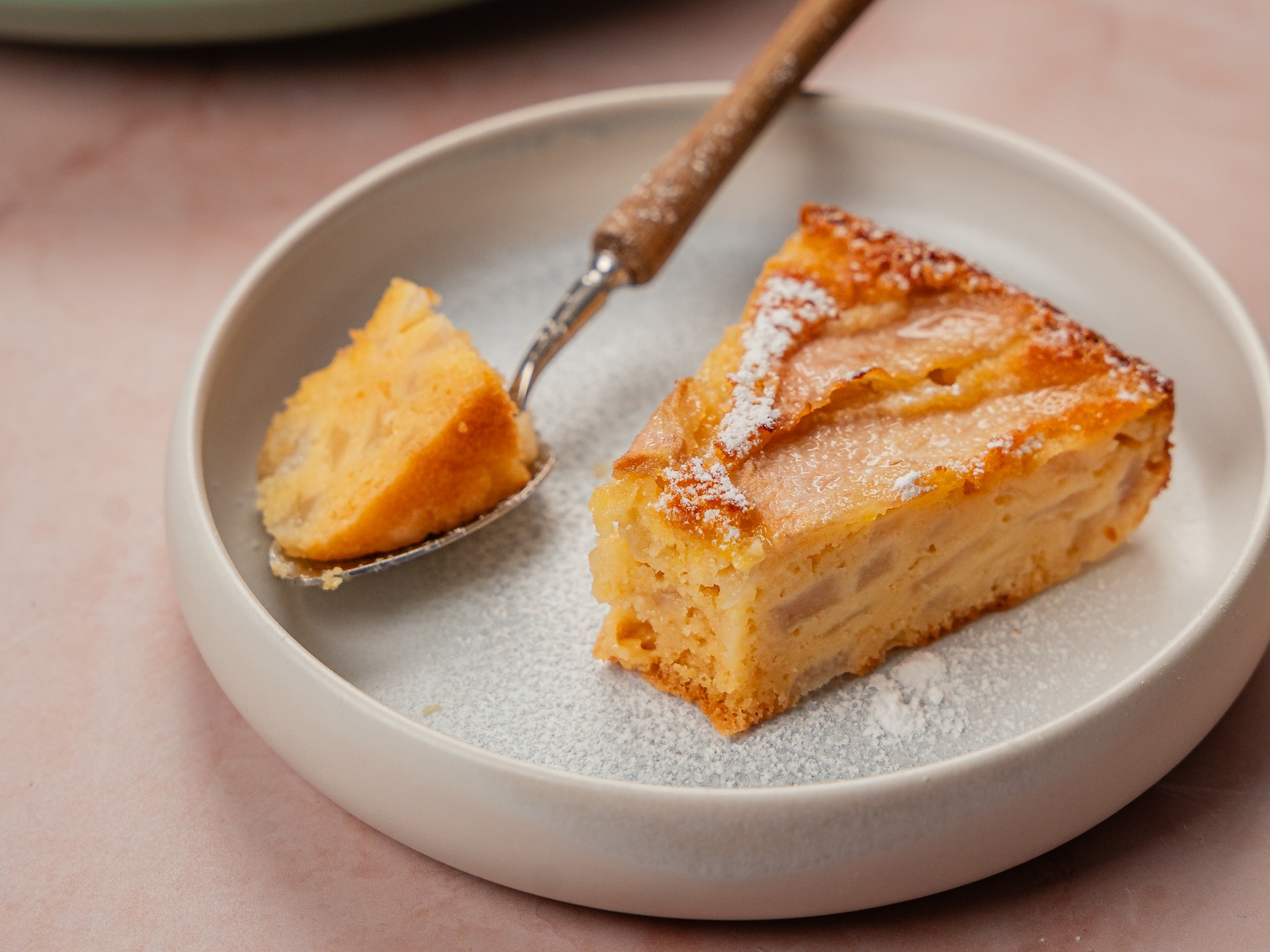 Verta para uma forma previamente untada e polvilhada com farinha. Disponha os restantes 200g de pera em fatias finas por cima e leve ao forno a 180ºC por 40 minutos.