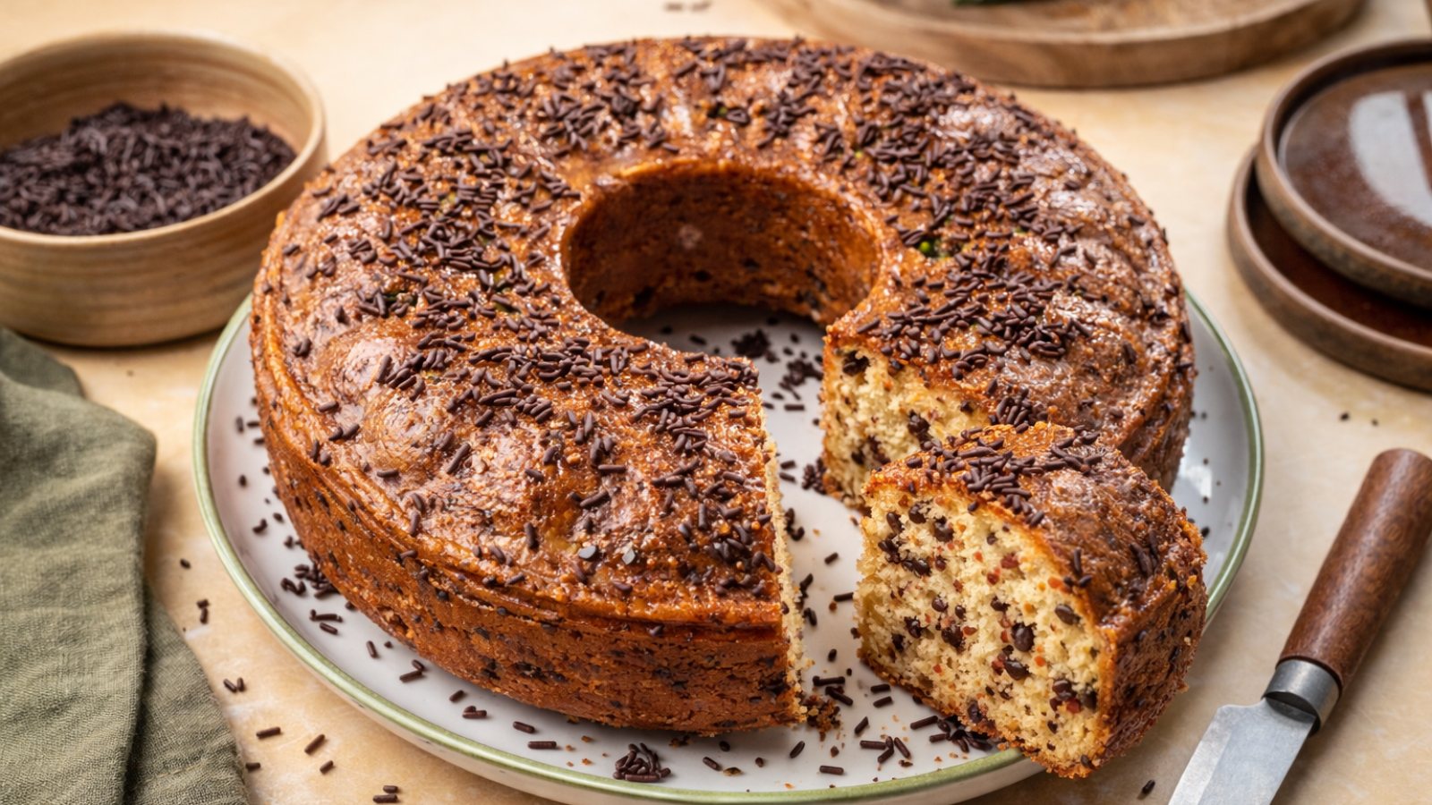 Retire do forno, deixe arrefecer e sirva o bolo formigueiro polvilhando mais chocolate granulado se desejar.