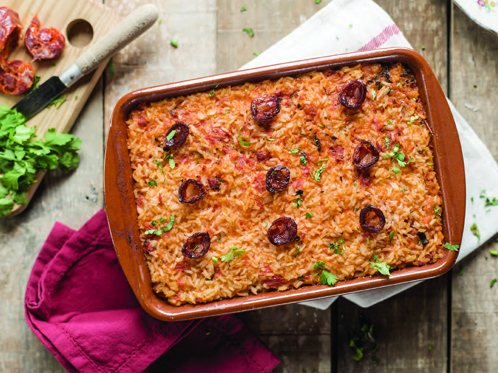 Num tabuleiro de forno coloque o cachaço e tempere com a cebola e o alho picados, metade do azeite, a banha, sal, o colorau, tabasco, o espumante, a salsa, o louro e a água e deixe marinar cerca de 12 horas.