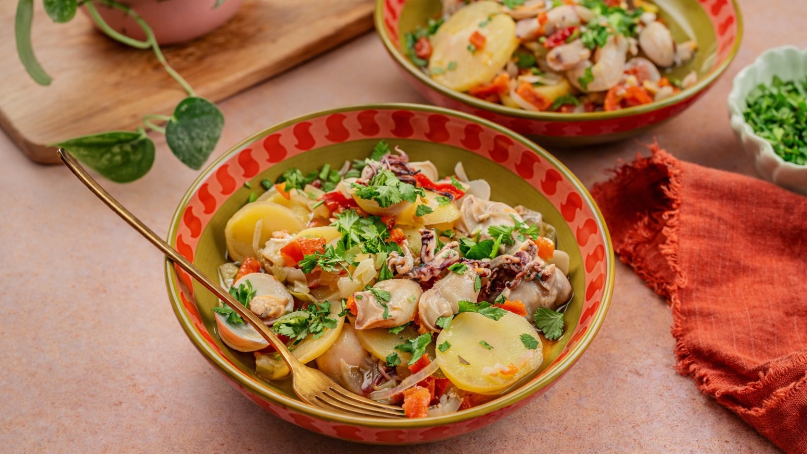 Sirva a caldeirada de lulas polvilhada com coentros picados.
