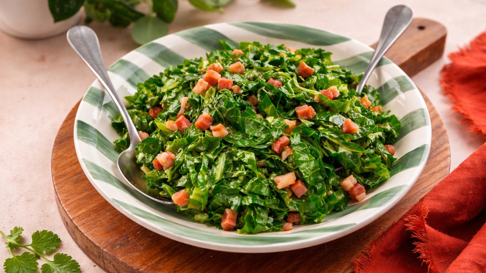 De seguida adicione a couve escorrida e salteie por 3 minutos. Retire do lume.