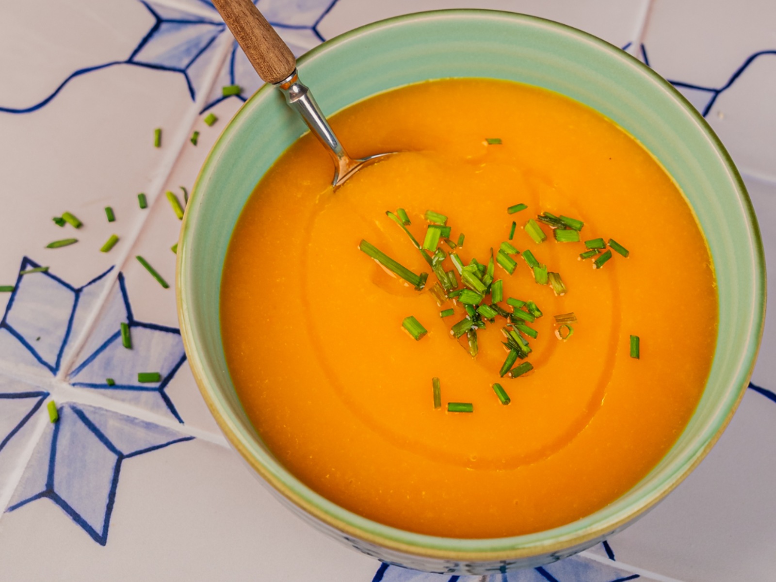 Antes de servir, decorar com um fio de azeite e com cebolinho picado.