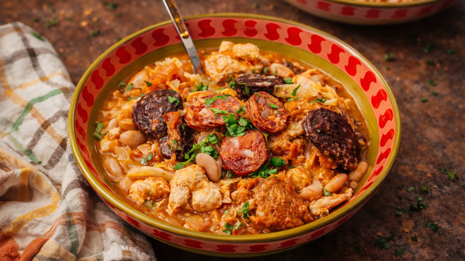 Junte o feijão-manteiga, a morcela, a alheira e a farinheira às rodelas. Deixe cozer por cerca de 10 minutos.