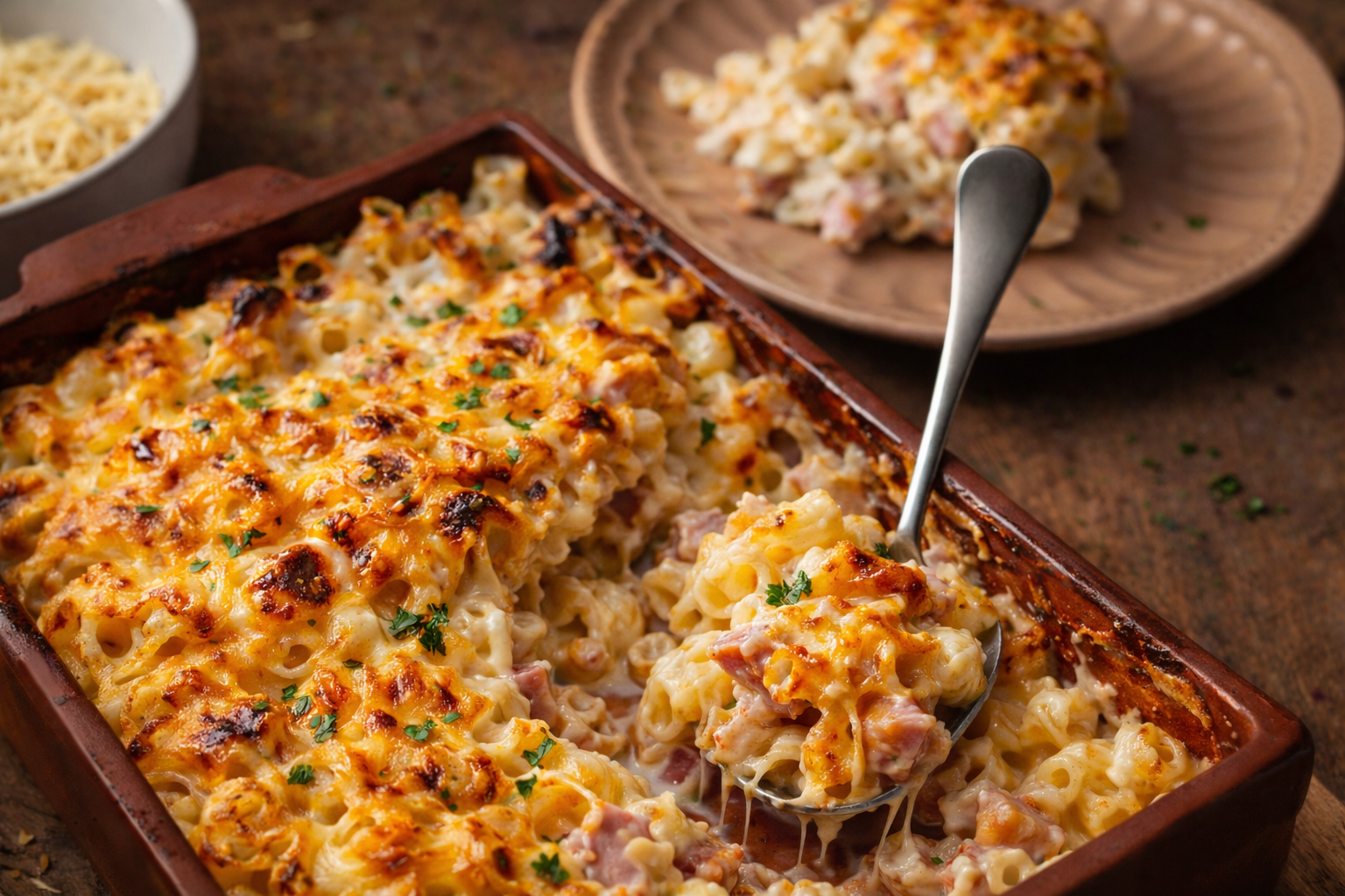 Divida este preparado por ramequins de ir ao forno (ou uma travessa grande). Polvilhe mais um pouco de queijo ralado por cima e leve ao forno a 200ºC por 20 minutos até gratinar.