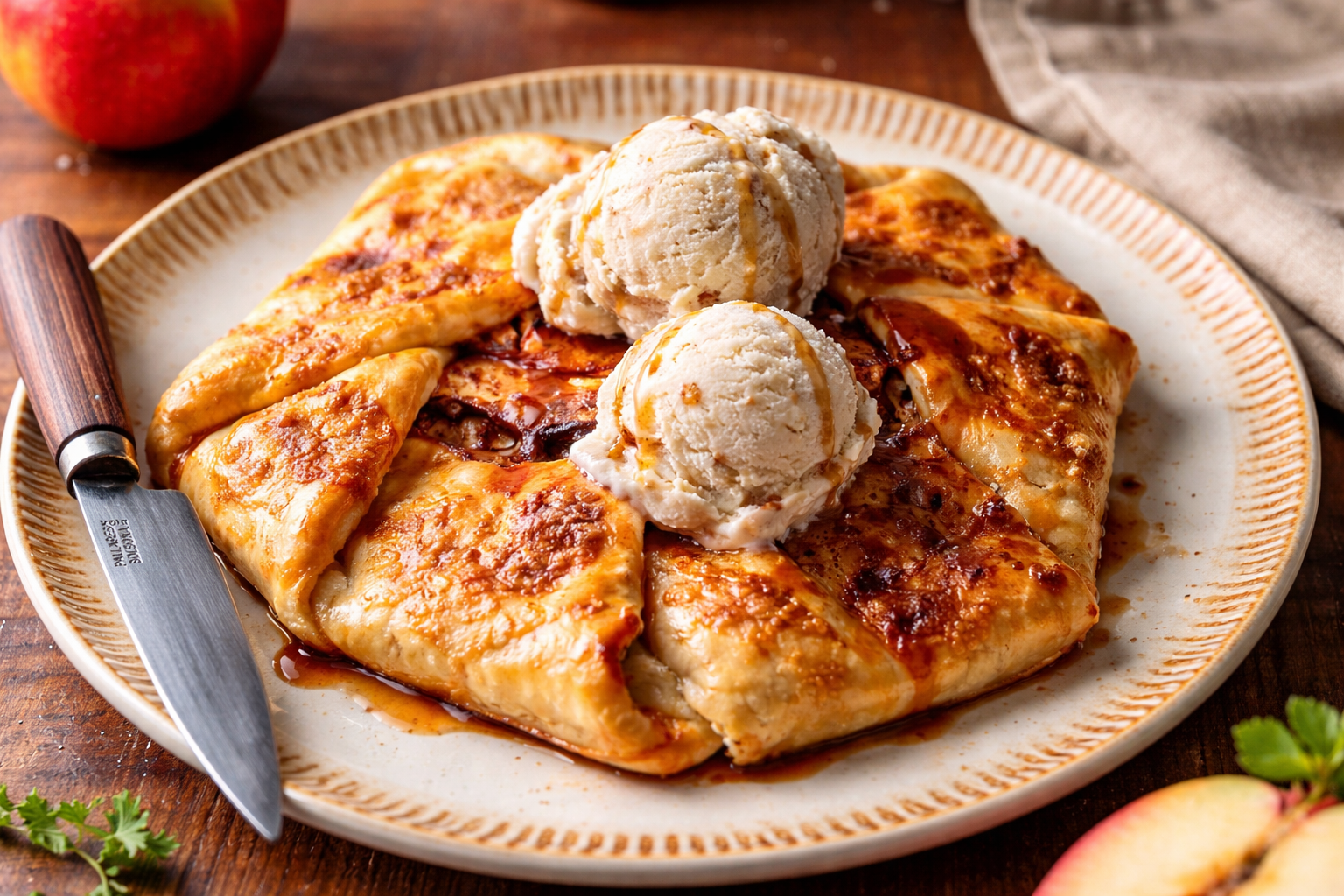 Servir as maçãs, regar com o molho e decorar com nozes picadas.