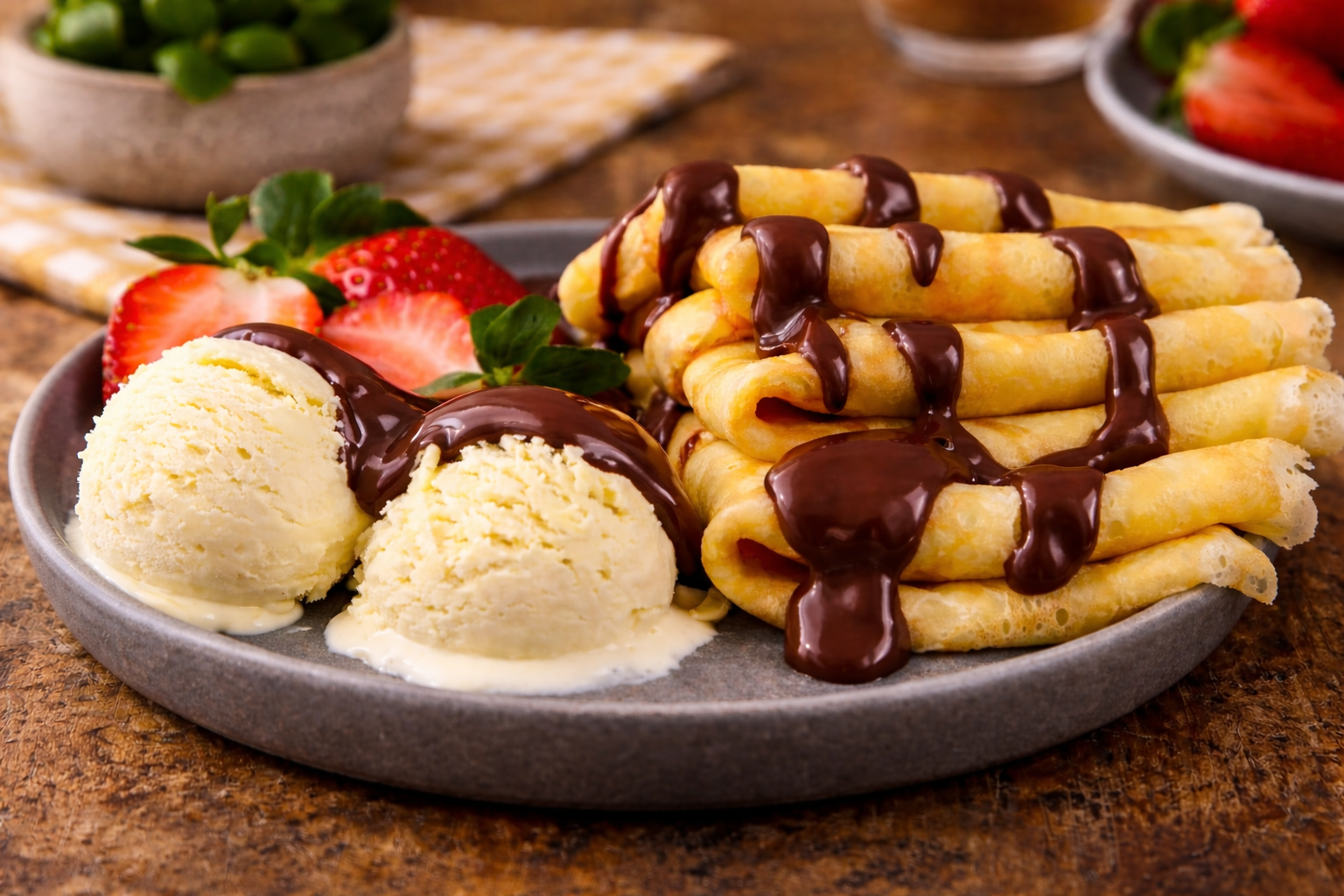 Numa frigideira anti-aderente, coloque 1/2 concha do preprado e espalhe-o por toda a frigideira. Assim que começarem a aparecer bolinhas, vire, e deixe cozinhar do outro lado.