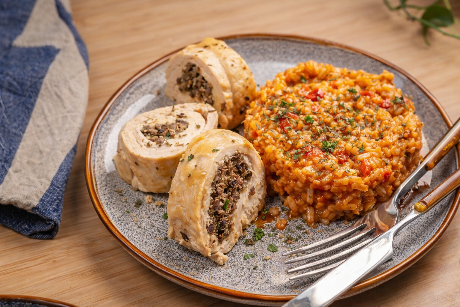 Sirva o frango numa taça, com a farinha de milho e o feijão branco.