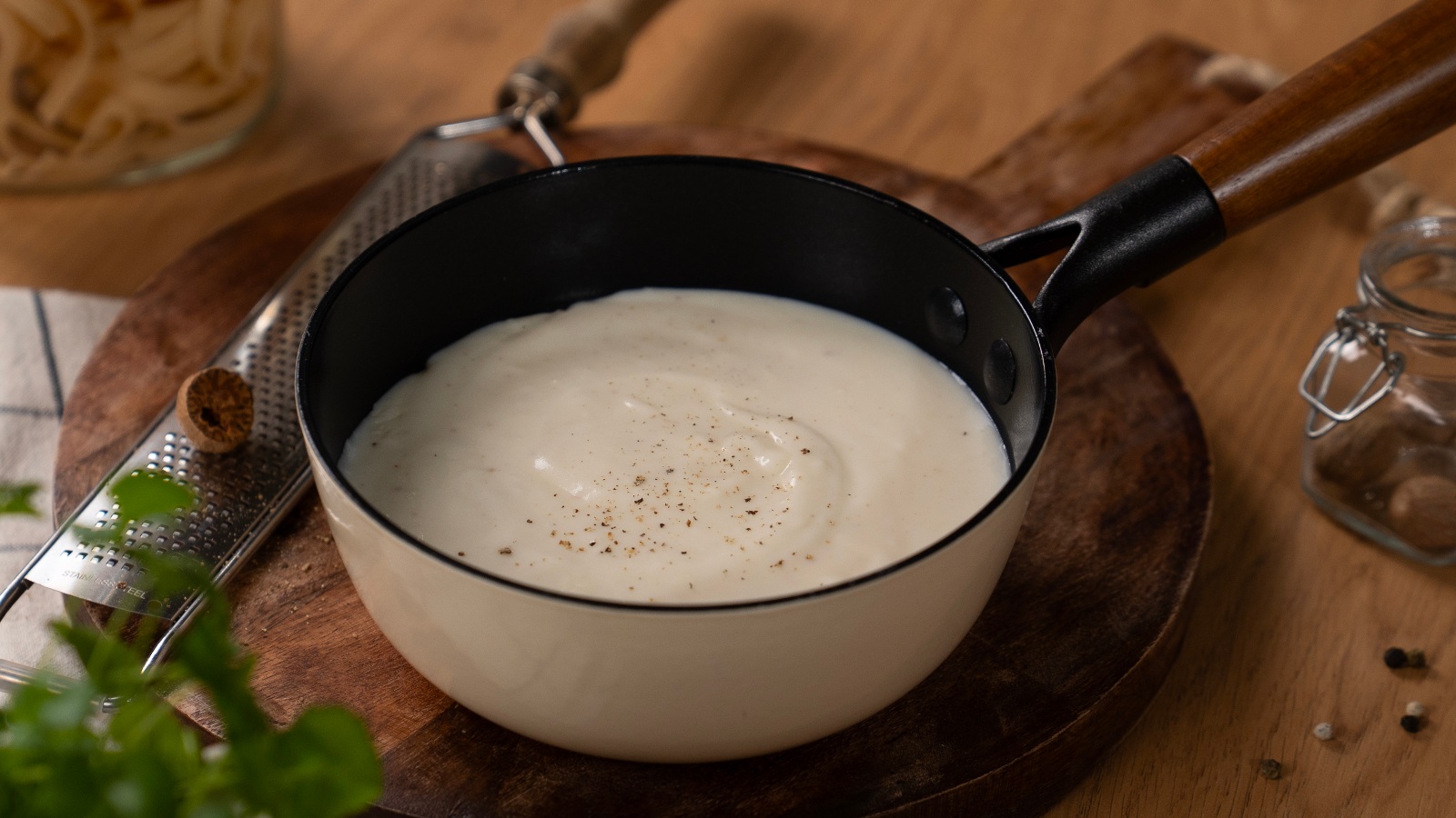 O molho branco é um clássico suave e cremoso, perfeito para envolver massas, legumes ou carnes, trazendo conforto e equilíbrio a qualquer prato.