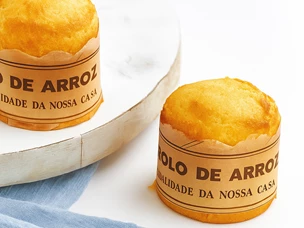 Coloque a farinha de arroz numa taça e adicione o fermento e o açúcar mascavado.
